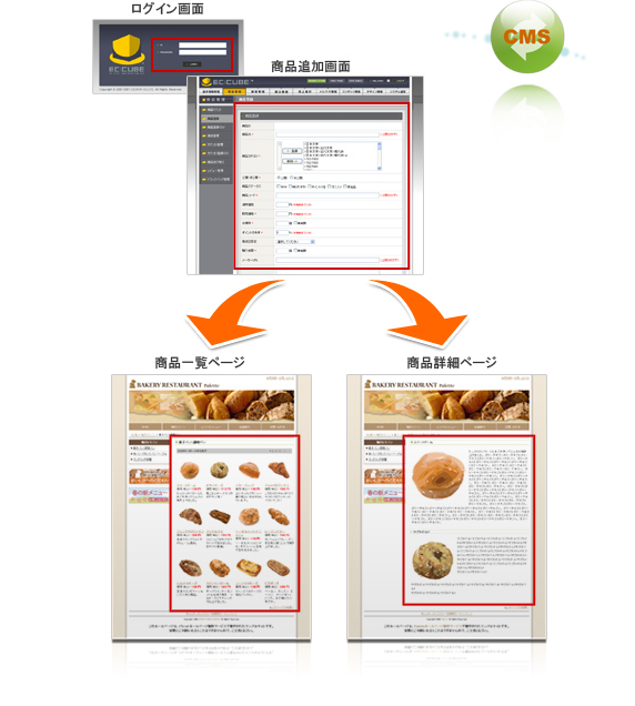 取り扱いメニューの追加や差換えなど、簡単な更新はお客様ご自身でできるように、誰にでも使える、ブログ感覚のCMSによるページ更新機能を実装。もちろんCMSの実装されているコンテンツは、無料で好きなだけカテゴリやページを増やす事ができます。
